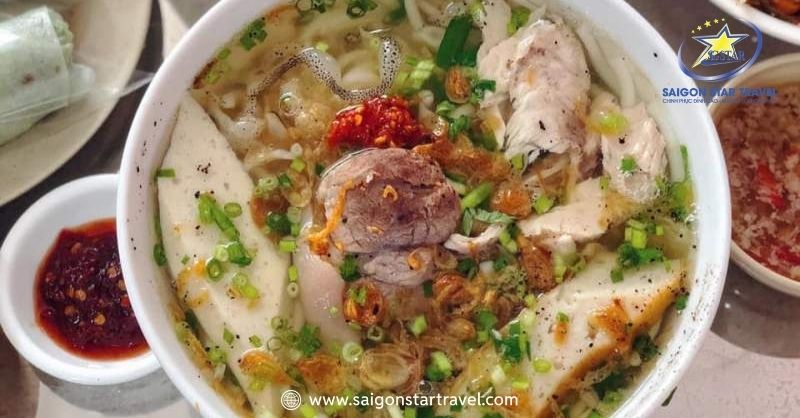 Điểm làm nên sự khác biệt của quán chính là sợi bánh canh làm từ bột lọc, có màu trắng đục, dai mềm nhưng không bở khi nấu. Nước dùng được chế biến từ cá biển, tôm và xương ống, mang đến vị ngọt tự nhiên, kết hợp với thịt heo chắc ngọt, tạo nên một món ăn hài hòa, hấp dẫn.