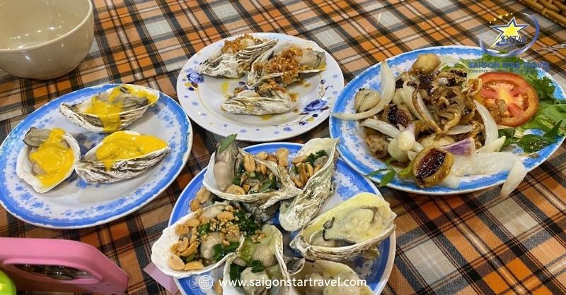 Hải sản tại đây nổi tiếng tươi sống, sạch sẽ mà giá cả lại cạnh tranh. Một phần hàu né chảo chỉ từ 42.000 đồng, hàu chén chỉ từ 5.500 đồng.