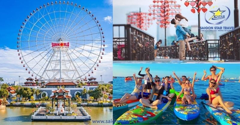Bà Nà Hill: Đây là tổ hợp khu vui chơi giải trí kết hợp ẩm thực và nghỉ dưỡng. Sở dĩ vẫn là một khu vui chơi nhưng Saigon Star lại xếp vào một mục riêng bởi đây có thể coi là biểu tượng du lịch Đà Nẵng. Nằm trên đỉnh núi Bà Nà, khu vui chơi như một châu Âu thu nhỏ với những công trình mang đậm kiến trúc Pháp cổ kính, thơ mộng và lãng mạn. Du khách tới đây có thể cảm nhận được không khí hoàn toàn khác biệt. Từ thời tiết tháng 5 oi ả, khi lên đỉnh Bà Nà bạn sẽ cảm thấy không khí thoáng mát, thoải mái. Đặc biệt, một ngày trên đỉnh Bà Nà Hill du khách sẽ cảm nhận được thời tiết của cả 4 mùa trong năm của Việt Nam. Trên đỉnh Bà Nà Hill còn có các khu nghỉ dưỡng, nhà hàng và khu vui chơi giải trí. Du khách thường dành một ngày để khám phá hết những điều thú vị tại Bà Nà.