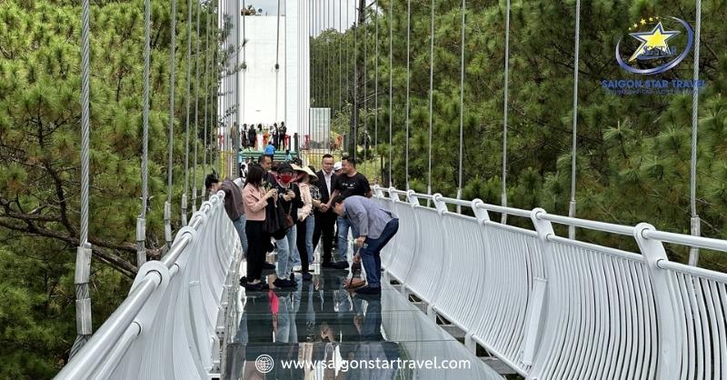 Khi bước chân lên cầu kính 7D tại Thung Lũng Tình Yêu, du khách như lạc vào một không gian hoàn toàn mới lạ. Dưới chân là thung lũng sâu thẳm ở độ cao 1.500 mét, xung quanh là những dãy núi trập trùng và rừng thông bạt ngàn. Cảm giác như đang lơ lửng giữa trời, hòa mình vào thiên nhiên hùng vĩ sẽ mang đến những khoảnh khắc vừa hồi hộp vừa đầy phấn khích.