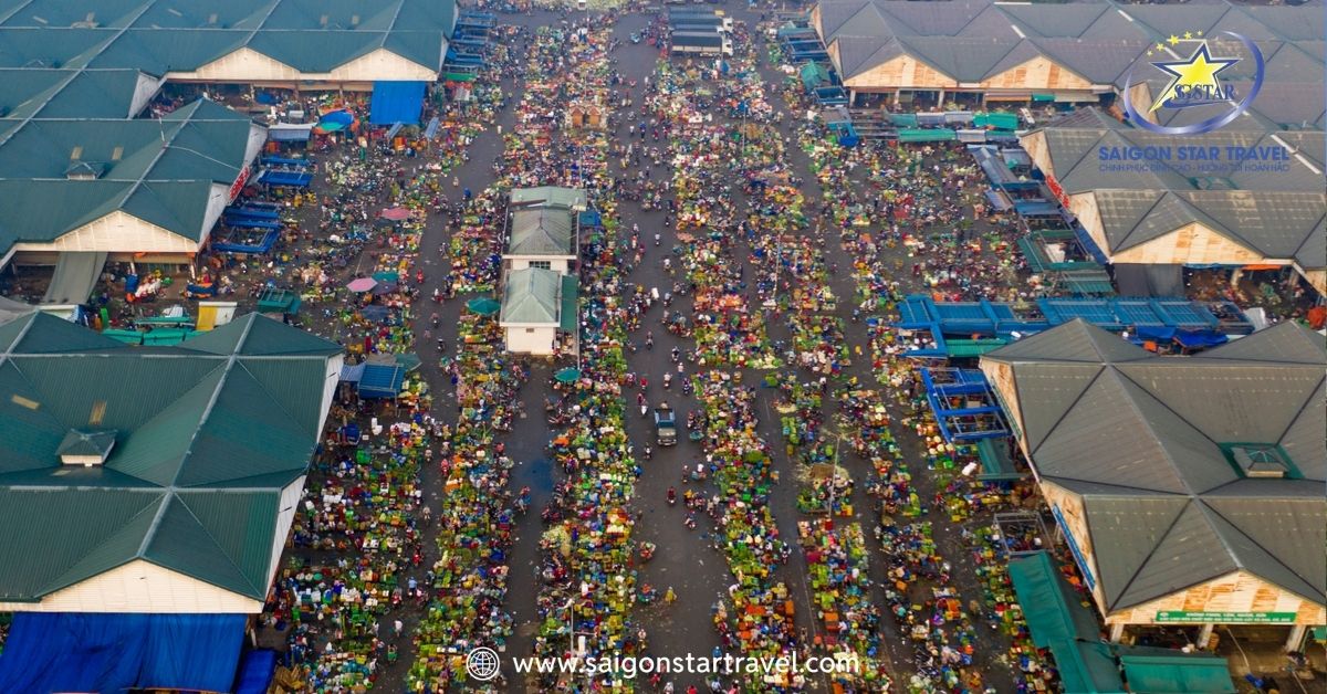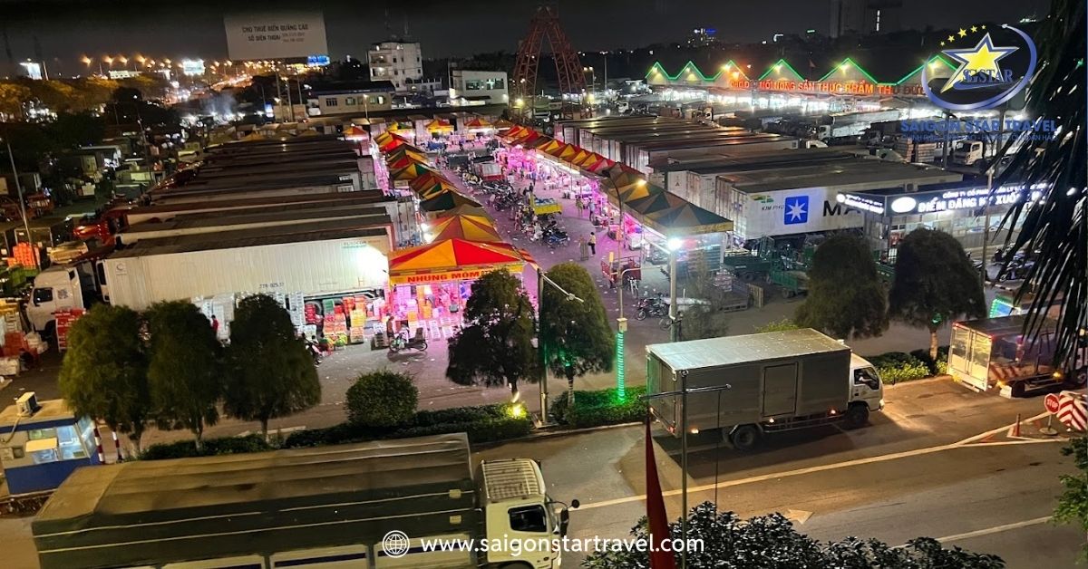 Tọa lạc tại số 141 Quốc lộ 1A, phường Tam Bình, TP. Thủ Đức, chợ đầu mối Thủ Đức là một trong những chợ đầu mối nông sản lớn nhất TP.HCM, đóng vai trò trung tâm phân phối trái cây, rau củ, nông sản tươi sống cho toàn thành phố và các tỉnh lân cận. Với diện tích hơn 20ha, quy mô gần 1.600 sạp hàng và lượng hàng hóa tiếp nhận mỗi ngày lên đến 2.800 – 3.500 tấn, chợ hoạt động 24/24, nhộn nhịp nhất từ 22h đêm đến 5h sáng hôm sau. Không chỉ nổi bật về giá sỉ cạnh tranh (rẻ hơn thị trường 10–20%), nơi đây còn có hệ thống giao hàng chuyên nghiệp bằng xe tải, ba gác, phù hợp cho cả nhà hàng, chợ nhỏ lẻ và các đại lý lớn. Hãy tìm hiểu bài viết này cùng Saigon Star Travel nhé!