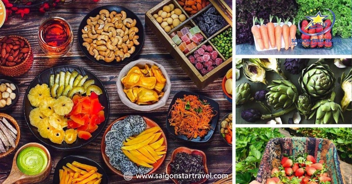 Tại chợ, du khách dễ dàng tìm thấy những món trà atiso nổi tiếng – đặc sản đặc trưng của vùng đất ngàn hoa, được nhiều người ưa chuộng bởi hương vị thanh mát và công dụng giải nhiệt, an thần. Bên cạnh đó, mứt hoa quả cũng là lựa chọn tuyệt vời để mua về làm quà, với đủ loại hương vị từ dâu tằm, kiwi, hồng dẻo đến mít sấy.