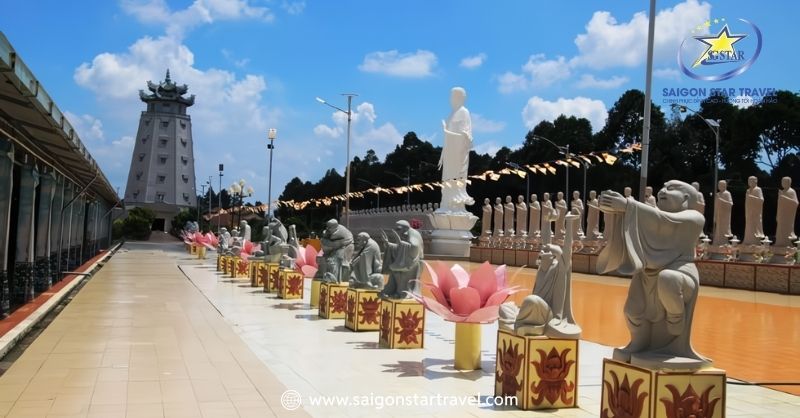- Đừng quên ghé khu vực phía sau tượng Di Lặc Bồ Tát, nơi có hàng hoa giấy rực rỡ – điểm check-in cực đẹp cho những ai yêu thích chụp ảnh.