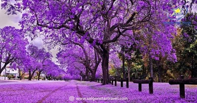 Vi vu trên những con đường quanh co uốn lượn, quý du khách cứ ngỡ như mình đang lạc vào chốn thần tiên vậy với một khung cảnh ngập tràn sắc hoa, nào là hoa Mai Anh Đào, hoa Ban Trắng, hay màu hoa phượng tím.