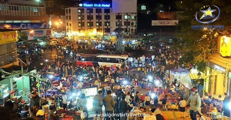 Đây là trung tâm buôn bán về đêm sầm uất nhất, đầy đủ nhất. Với các mặt hàng từ quần áo, vải vóc, quà lưu niệm, mỹ nghệ,…Và đây cũng là một trong 8 điểm vui chơi vào buổi tối ở Đà Lạt nhất định bạn phải ghé qua. Nếu không phải mua sắm, bạn vẫn có thể đắm chìm vào hàng ngàn món ăn ngon phố núi này.