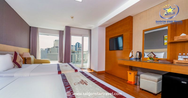 Bạn đang tìm kiếm một nơi nghỉ dưỡng sang trọng, tiện nghi ngay sát bờ biển Nha Trang tuyệt đẹp? Hãy để Saigon Star Travel đồng hành cùng bạn đến với Dendro Gold Hotel – khách sạn 4 sao đẳng cấp nằm trên con đường Trần Phú sôi động, nơi mang đến trải nghiệm nghỉ dưỡng hoàn hảo giữa lòng thành phố biển!