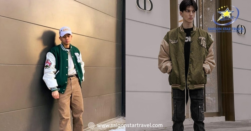 Nếu băn khoăn về trang phục phù hợp cho những ngày Đà Lạt mưa, áo khoác bomber kết hợp cùng quần jean ống rộng chắc chắn là lựa chọn đáng cân nhắc. Outfit này không chỉ giúp các chàng trai trông trẻ trung, năng động mà còn cực kỳ thời trang. Kết hợp thêm một đôi giày thể thao, bạn sẽ có ngay set đồ hoàn hảo để vừa giữ ấm, vừa thoải mái khám phá Đà Lạt trong những ngày se lạnh.