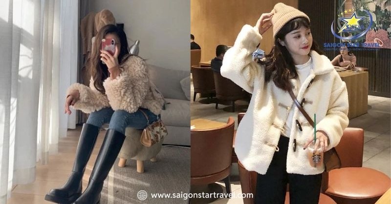 Set đồ quần jean skinny kết hợp áo khoác lông cừu là lựa chọn lý tưởng khi vi vu Đà Lạt. Không chỉ giúp bạn trông sành điệu, thời thượng, outfit này còn giữ ấm hiệu quả trong tiết trời se lạnh. Để thêm phần cuốn hút, bạn có thể phối cùng một đôi boots cao có dây buộc và mũ len sáng màu, tạo nên vẻ ngoài vừa cá tính vừa ngọt ngào!