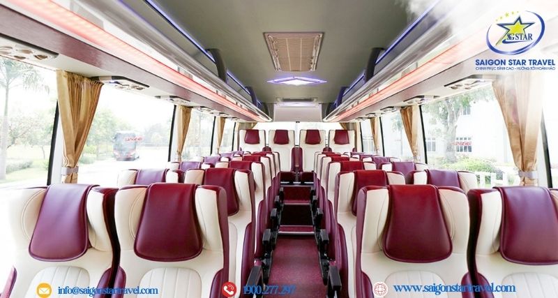 Không gian rộng rãi, thoáng đãng cùng tiện ích hiện đại như màn hình LCD, âm thanh sống động, wifi tốc độ cao giúp chuyến đi thêm phần thoải mái và thú vị. Đây là lựa chọn tối ưu cho các đoàn thể, doanh nghiệp hoặc tổ chức sự kiện quy mô lớn.