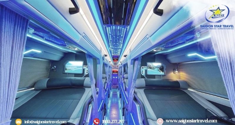 Tất cả các xe đều là xe đời mới, được bảo dưỡng định kỳ, vệ sinh thường xuyên. Nội thất thoáng đãng, trang bị tiện ích hiện đại như máy lạnh, âm thanh, wifi, cổng sạc điện thoại… giúp hành khách tận hưởng sự thoải mái, tiện nghi và an toàn trong suốt chuyến đi.