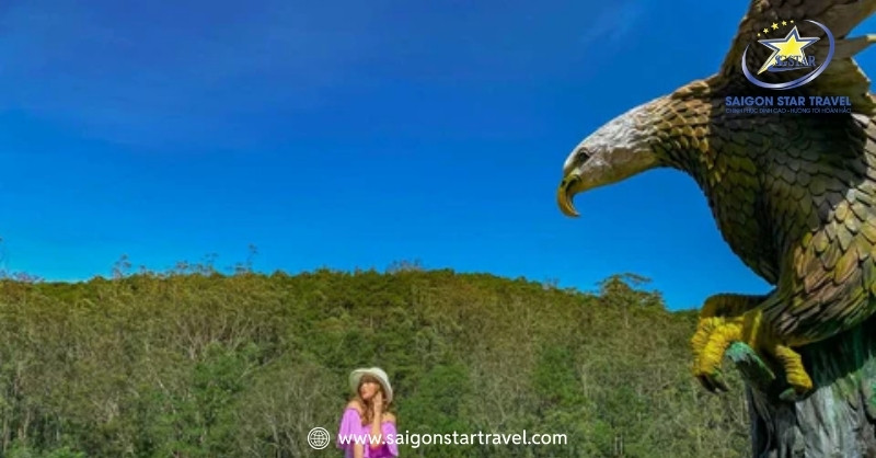 Bên cạnh đó, du khách cũng không thể bỏ qua tiểu cảnh Đảo chim đại bàng, nơi nổi bật với bức tượng chim đại bàng khổng lồ đang sải cánh mạnh mẽ trên nền núi rừng hùng vĩ. Đây là một địa điểm lý tưởng để bạn ghi lại những bức ảnh ấn tượng, mang đậm dấu ấn cá nhân.