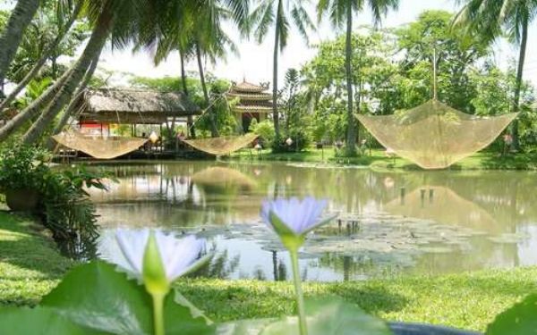Nơi đây nổi bật với những hàng dừa xanh soi bóng bên dòng kênh bao đời đổ ra sông Sài Gòn. Khu du lịch này còn có các thảm cỏ trải dài xanh mượt êm ái, cùng trăm hoa đua nở dưới bóng cây. Tất cả sẽ đưa bạn đến một thế giới tươi đẹp kỳ diệu đến nức lòng.