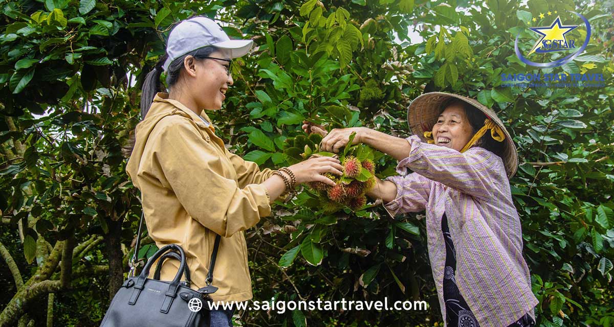Mùa trái cây (tháng 5 - tháng 8): Mặc dù có thể xuất hiện những cơn mưa bất chợt nhưng đây lại là lúc bạn được thưởng thức đủ loại trái cây tươi ngon, chín mọng ngay tại vườn. Du khách có thể trải nghiệm cảm giác tự tay hái và ăn tại chỗ những loại trái cây đặc trưng như sầu riêng, chôm chôm, măng cụt...