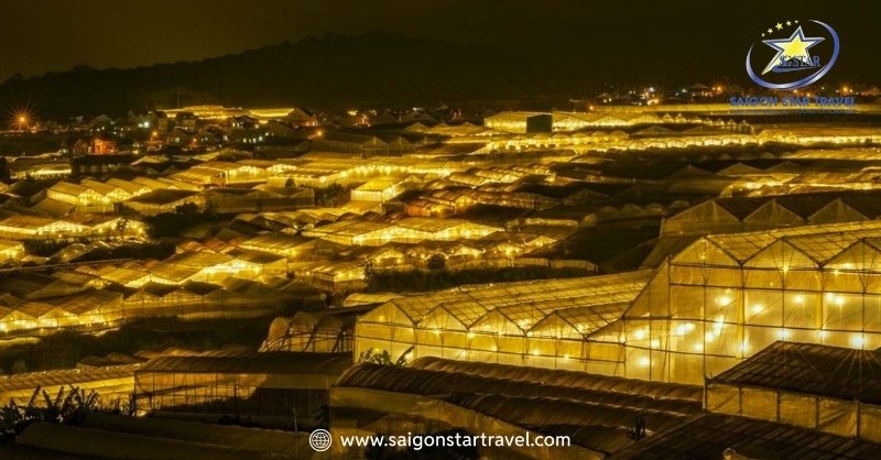 Nếu có cơ hội, hãy tận hưởng khung cảnh huyền ảo của làng hoa khi màn đêm buông xuống. Khi những vườn hoa dần sáng đèn, không gian trở nên lung linh đầy mê hoặc. Những bông hoa tươi thắm tỏa sáng dưới ánh đèn vàng, tạo nên một khung cảnh rực rỡ đến lạ.