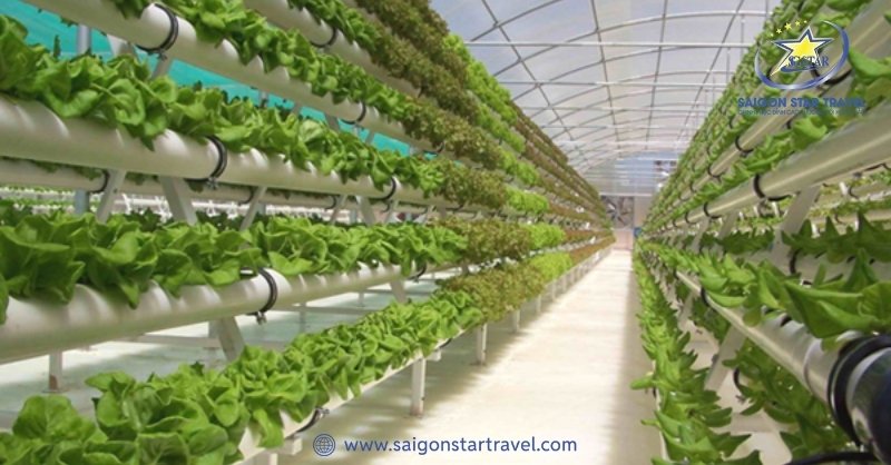 Đây là phương pháp tiên tiến theo chuẩn quốc tế hoàn toàn không dùng đất khiến du khách không khỏi tò mò và luôn muốn được lựa chọn thưởng thức trực tiếp những rau củ quả tươi sạch này.