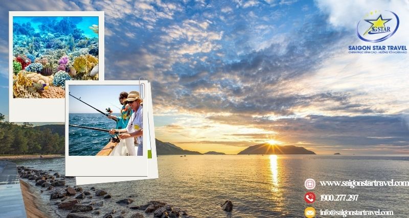Cảnh biển nơi đây nên thơ và hữu tình, non nước và mây trời gần như hoà làm một khiến du khách như lạc vào chốn hải dương xanh với những dải san hô đặc sắc nổi bật lên nền nước xanh trong vắt. Đặc biệt, cùng với hoạt động chèo thuyền Kayak, câu mực về đêm, câu cá,… sẽ đem đến cho bạn nhiều trải nghiệm thú vị.