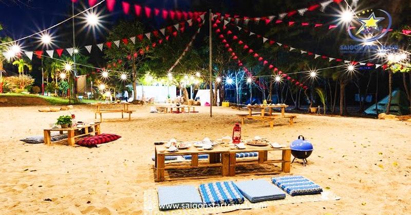 Du khách có thể tham gia nhiều hoạt động như cắm trại, BBQ, tắm biển, đốt lửa trại, vui chơi tại hồ bơi và công viên nước. Không gian thiên nhiên xanh mát cùng nhiều góc check-in đẹp khiến nơi đây trở thành điểm đến hấp dẫn.