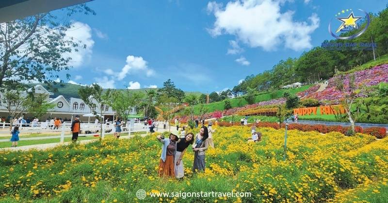 Nếu Quý khách yêu động vật và muốn tìm một điểm check-in vừa xanh mát vừa dễ thương, Puppy Farm Đà Lạt chắc chắn sẽ làm hài lòng. Nằm tại Cam Ly – Đà Lạt, nơi đây là khu du lịch kết hợp nông trại cún với hàng chục giống chó đáng yêu, cùng vườn hoa rực rỡ quanh năm như hoa hướng dương, hoa lavender hay hoa hồng trong nhà kính. Chỉ cách trung tâm khoảng 8 km, Puppy Farm mang đến không gian thư giãn, nhiều góc chụp ảnh sống ảo và các dịch vụ tiện ích như quán café, khu vui chơi trẻ em, bãi đỗ xe rộng rãi. Với giá vé hợp lý và giờ mở cửa từ 8:00 – 17:00, đây là điểm đến lý tưởng cho gia đình, nhóm bạn, cặp đôi khi du lịch Đà Lạt. Saigon Star Travel sẵn sàng đồng hành để Quý khách có chuyến đi trọn vẹn và đáng nhớ.