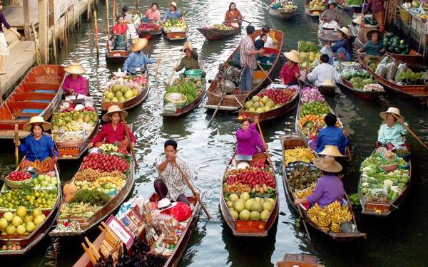 Đây là khu chợ nổi nổi tiếng nhất ở Bangkok, Thái Lan. Chợ không họp trên 1 khúc sông mà len lỏi ở tất cả các kênh rạch nhỏ, Bạn có thể thuê một chiếc thuyền để tham quan được các gian hàng di động và mua những món đồ theo nhu cầu của bản thân. Hàng hóa ở đây hết sức đa dạng với đầy đủ các mặt hàng từ tiêu dùng hàng ngày tới ăn uống hay quà lưu niệm.
