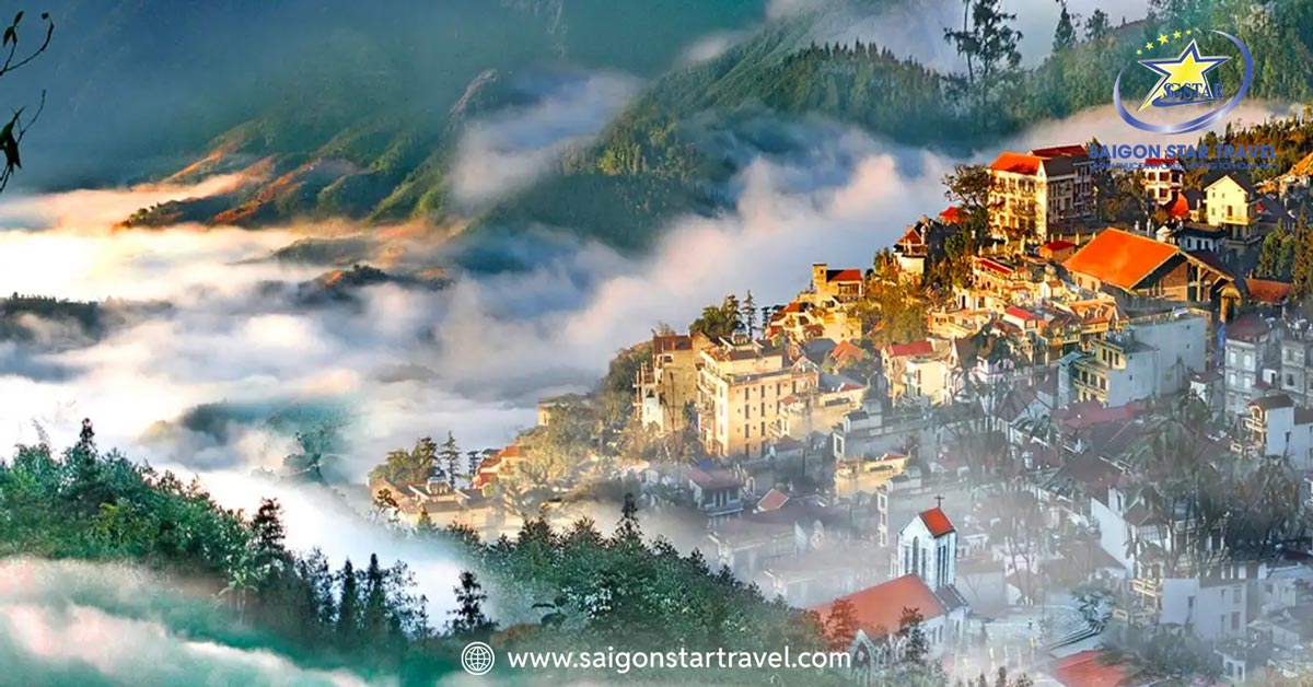 Sapa thuộc miền nào là thắc mắc phổ biến của nhiều du khách khi lên kế hoạch khám phá vùng núi phía Bắc. Sapa là một huyện thuộc tỉnh Lào Cai, nằm ở vùng Tây Bắc Bộ, thuộc miền Bắc Việt Nam – nơi sở hữu địa hình núi cao, khí hậu ôn đới mát mẻ quanh năm cùng nền văn hóa đặc sắc của các dân tộc H’Mông, Dao, Tày, Giáy. Không chỉ nổi tiếng với những thắng cảnh như đỉnh Fansipan, bản Cát Cát, núi Hàm Rồng, Sapa còn hấp dẫn du khách bởi những ruộng bậc thang kỳ vĩ, ẩm thực độc đáo và trải nghiệm săn mây – ngắm tuyết có một không hai tại Việt Nam. Hãy cùng Saigon Star Travel khám phá về Sapa ngay sau đây: