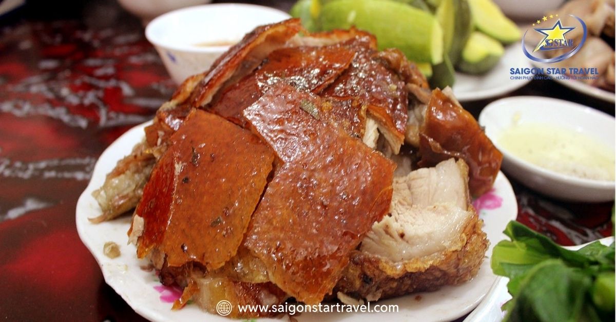 Tên gọi độc đáo này xuất phát từ cách người dân tộc mang những chú lợn nhỏ chỉ vài cân ra chợ bán – bằng cách… “cắp nách”. Thịt lợn cắp nách sau khi được làm sạch sẽ được tẩm ướp gia vị núi rừng rồi nướng nguyên con trên than hồng, lớp da vàng ruộm giòn rụm, thịt bên trong ngọt mềm, thơm phức.