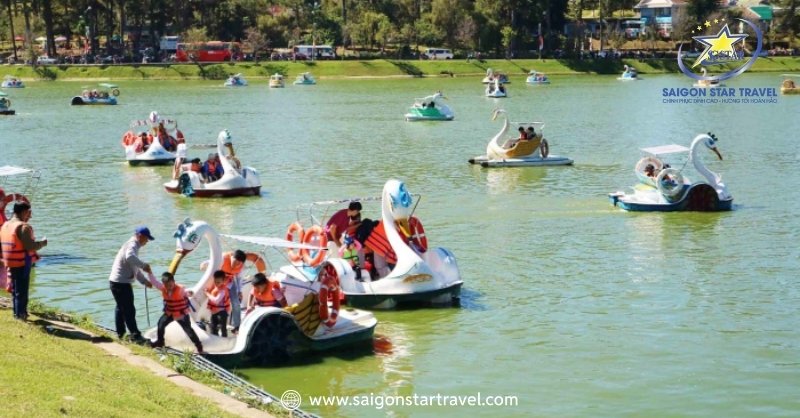 Giá thuê thuyền vịt rất hợp lý, khoảng 60.000 VNĐ/giờ, mang đến một trải nghiệm đáng nhớ trong hành trình khám phá Đà Lạt.
