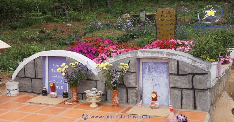 Hai phần mộ của cô Thảo và chú bộ đội TâmSau khi dạo chơi xung quanh và dừng chân nghỉ ngơi trong những nhà chồi bên thảm cỏ xanh, ngắm nhìn những giỏ phong lan nằm trên đồi cao nguyên. Hình ảnh Hồ Than Thở hiện lên có chút thoáng buồn về câu chuyện của cô giáo Thảo và chú bộ đội Tâm. Một minh chứng cho tình yêu đầy oan trái của Thảo- Tâm, tại đây du khách sẽ thấy ngôi mộ của 2 người ở Đồi Thông hai mộ ngay từ ngoài đi vào.