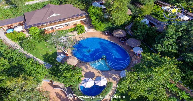 Toàn cảnh Suối khoáng nóng Tháp Bà nhìn từ trên cao