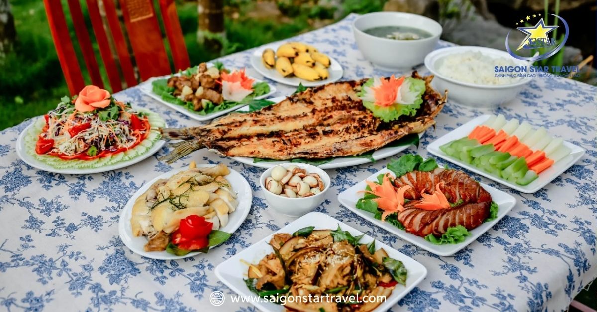 Ẩm thực ở Thung Nham cũng là một trải nghiệm đáng nhớ. Du khách có thể thưởng thức những món đặc sản Ninh Bình như cơm cháy, thịt dê núi, cá sông nướng… được chế biến tại các nhà hàng trong khu du lịch. Mỗi món ăn đều mang đậm hương vị vùng miền, vừa dân dã vừa tinh tế.
