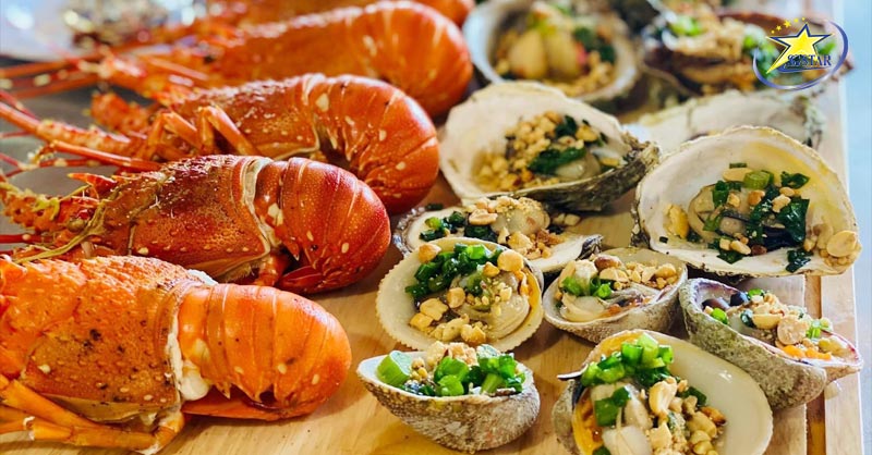 🔵 Đoàn tiếp tục đến với Làng Chài, tại đây Quý khách có thể chọn cho mình các loại hải sản tươi sống để làm phong phú thực đơn bữa trưa của mình.