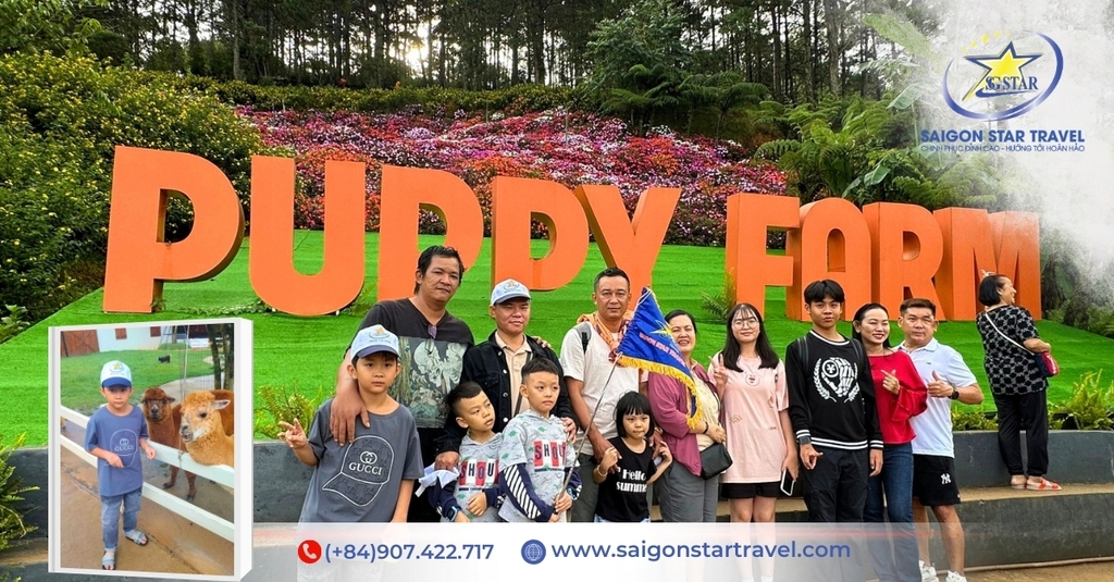 14h30: Tham quan Puppy Farm – Nông Trại Cún. Quý khách vui chơi cùng các giống cún đáng yêu và tham quan các khu vườn theo mùa (tùy thời điểm).