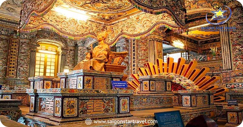 🔵 Tham quan: Lăng vua Khải Định với lối kiến trúc độc đáo nổi bậc nhất trong các Lăng vua triều Nguyễn (1802-1945), kết hợp đỉnh cao giữa văn hoá Đông - Tây.