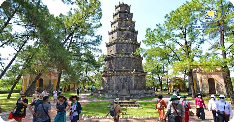 🔵 Chùa Thiên Mụ cổ kính, xây dựng từ những năm đầu của thế kỉ XVII.