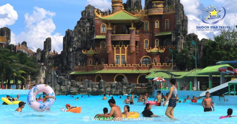 11h30: Đoàn dùng cơm trưa tại Khu Du Lịch. Sau đó, hướng dẫn viên của Saigon Star Travel đưa các em học sinh vào tham quan, tắm biển Đại Nam. Với bãi biển nhân tạo lớn nhất Đông Nam Á, các em sẽ được tham gia đắp cát, khám phá châu báu, hồ tạo sóng,…