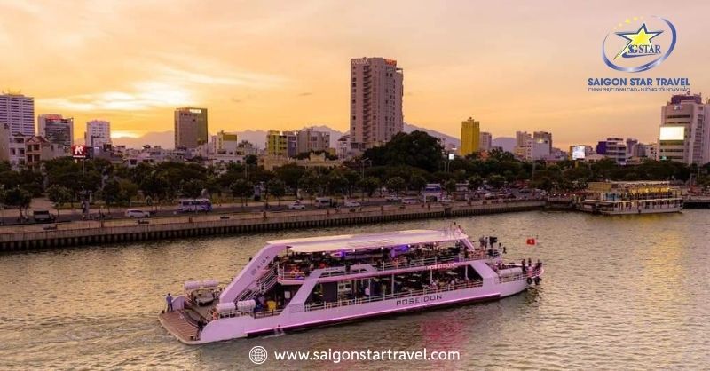 TỐI: Lên thuyền - Du thuyền Thần Biển POSEIDON – trải nghiệm sảng khoái tuyệt vời trên sông Hàn và cửa biển để ngắm hoàng hôn Đà Nẵng tuyệt đẹp.