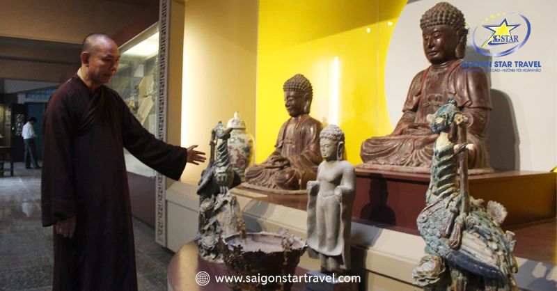 Tham quan Bảo Tàng Phật Học – Bảo tàng văn hóa Phật giáo đầu tiên ở Việt Nam, Chùa Quan Thế Âm – tọa lạc tại chân núi Kim Sơn, một trong năm ngọn Ngũ Hành Sơn và Làng Nghề Điêu Khắc Đá. Mua sắm đặc sản Quà Miền Trung.