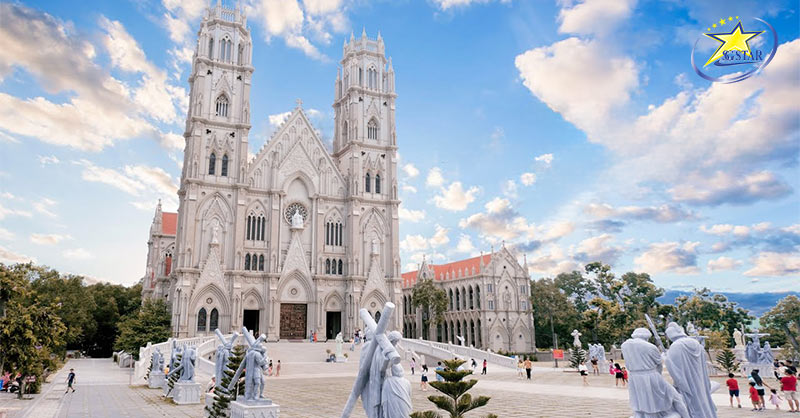 - Điểm đến đầu tiên trong hành trình, xe đưa Quý khách đến với Nhà thờ Giáo Sứ Song Vĩnh. Nơi đây không chỉ là một địa điểm tham quan du lịch mà còn là địa điểm tâm linh nổi tiếng mà lữ khách phương xa đến hành hương. Công trình được thiết kế theo lối kiến trúc Gothic cùng kiểu vòm nhọn khoác lên mình vẻ đẹp cổ điển. Nhà thờ Song Vĩnh có hai tháp cao đứng sừng sững góp phần tạo nên sự nguy nga, lộng lẫy của nhà thờ này.
