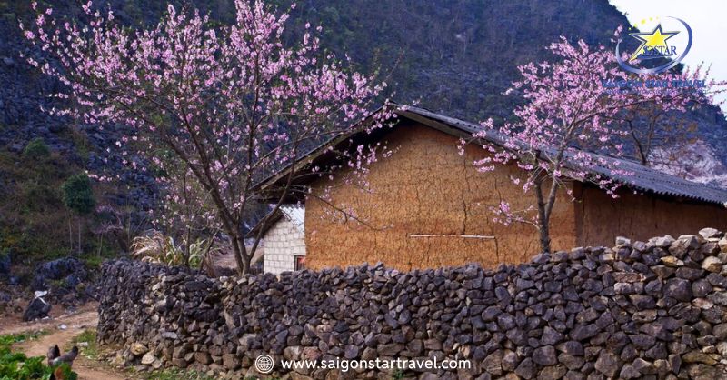 Tham quan Phố Cáo với những ngôi nhà đặc trưng của người H'mông bởi những hàng rào đá cung quanh nhà.
