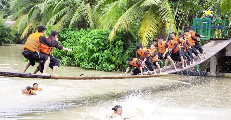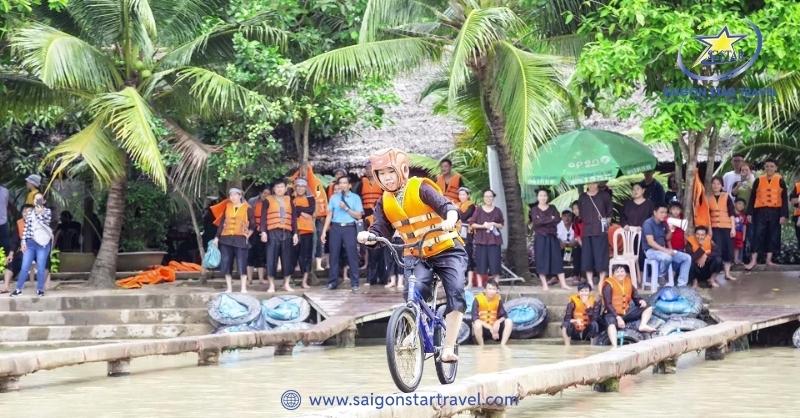 Tham gia chơi cầu lắc thăng bằng Tour Lan Vương Bến Tre 1 Ngày
