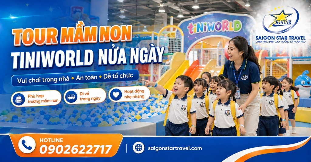 Tour mầm non tiNiWorld nửa ngày tại TpHCM là chương trình ngoại khóa phù hợp với các trường đang tìm một chuyến đi ngắn, nhẹ, an toàn và dễ tổ chức cho các bé. Thay vì di chuyển xa hoặc tham gia các hoạt động ngoài trời phụ thuộc thời tiết, chương trình này phù hợp hơn khi được triển khai theo hướng vui chơi trong nhà, vận động vừa sức, rèn kỹ năng đi theo đoàn, tương tác tập thể và thay đổi môi trường học tập một cách tự nhiên cho khối mầm non.