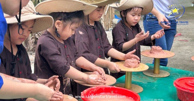 Làm Gốm: Học cách làm gốm truyền thống với bàn xoay và đất sét, từ đó tạo ra các sản phẩm thủ công mỹ nghệ.
