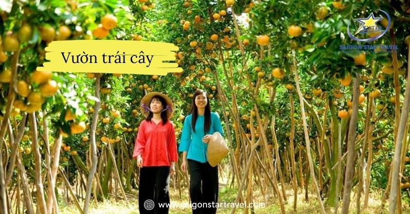 Chiều: Quý khách đến tham quan vườn cây ăn trái rộng 3.000m², tự tay hái và thưởng thức những loại trái cây tươi ngon theo mùa ngay tại vườn.