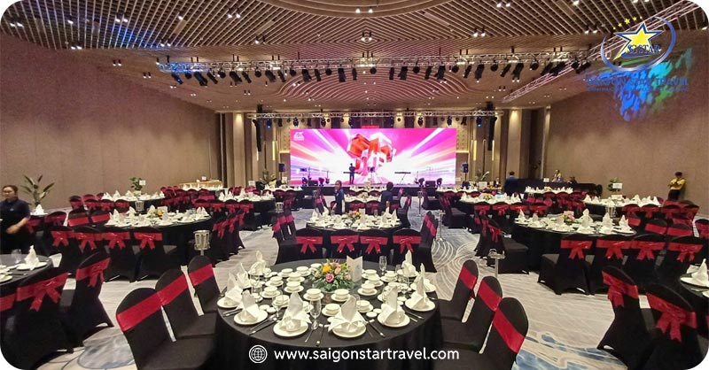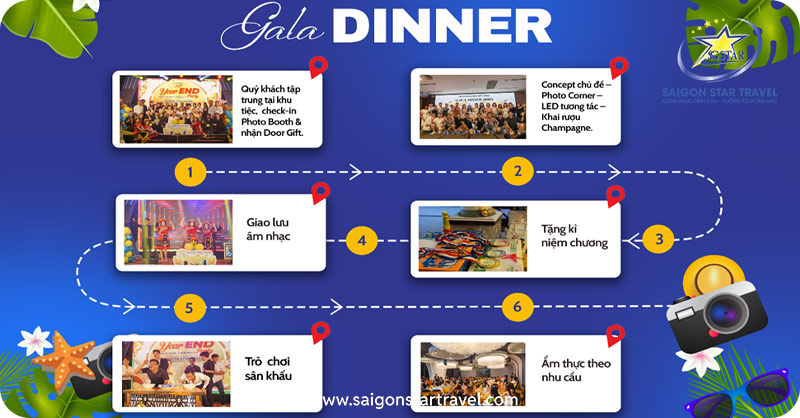 17h30: Quý khách tham gia chương trình Gala Dinner Hoành Tráng, Chuyên Nghiệp với Âm thanh – Sân khấu đầy đủ, do đội ngũ nhân viên Saigon Star Travel tổ chức.