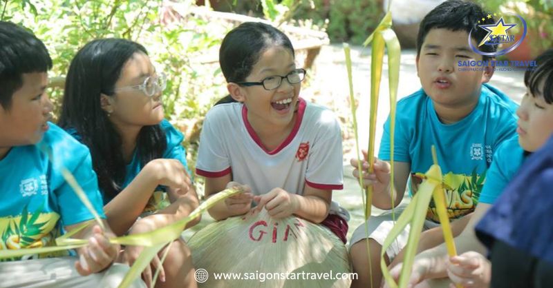 • Thủ công mỹ nghệ - Làm cào cào lá dừa: Các em sẽ học cách tạo ra những chú cào cào xinh xắn từ lá dừa dưới sự hướng dẫn tận tình của các anh chị hướng dẫn viên.