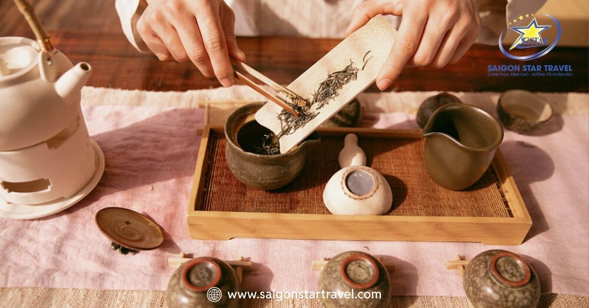 Quán trà Long Tỉnh là một quán trà truyền thống nằm ở Ô Trấn, hay còn được gọi là Trà Giếng Rồng, một loại trà xanh nổi tiếng được mô tả với hương thơm đặc trưng, có vị đắng ban đầu và hậu ngọt dịu. Tại đây, Công ty tặng Quý khách trải nghiệm mặc Hán Phục – trang phục truyền thống của người dân Trung Quốc, chụp những tấm hình kỉ niệm.