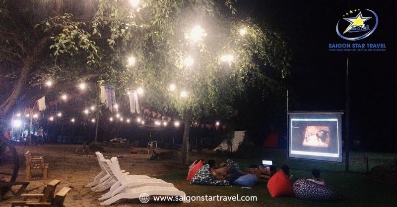 Khu cắm trại còn có bãi cỏ rộng, rất thích hợp cho các hoạt động nhóm như trò chơi vận động hay team-building. Khi đêm xuống, không khí càng thêm sôi động với bữa tiệc lửa trại. Cùng nhau quây quần bên ánh lửa bập bùng, ca hát và chia sẻ những câu chuyện vui sẽ mang đến những kỷ niệm đáng nhớ, khiến chuyến đi của bạn thêm trọn vẹn.